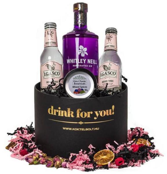Drink For You feliratos Rebarbarás Gin Tonik ajándék csomag fekete díszdobozban - ginshop