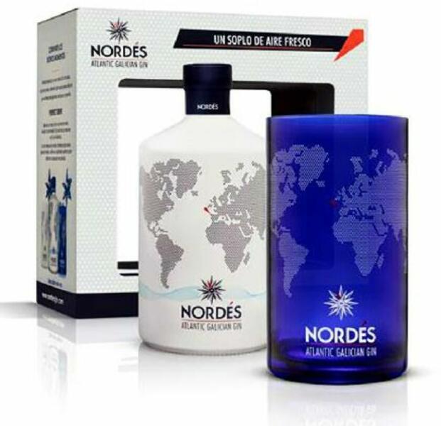 A Nordes Gin egy fondorlatos spanyol ital, aminek alapját az Albarino szőlőből készült szesz adja, nem pedig a ginek világában gyakoribbnak mondható gabonaszesz. Ehhez adják hozzá a 11 gyógynövényből készült párlatot, amelyben a valódi galíciai kincsnek számító eukaliptusz, a citromverbéna és a sziksófű is felsejlik. Ezeknek köszönhető a gin összetett, tengeri hatású íze. A díszdobozban egy üveg gin és egy pohár lapul.